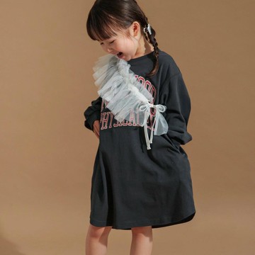 日本 BRANSHES - 100%棉 美式休閒長袖洋裝-拱形文字-炭灰
