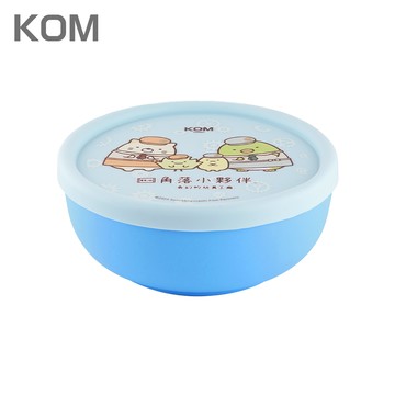 KOM - 角落小夥伴-不鏽鋼兒童矽膠隔熱碗-貓+企鵝-(藍色) (單入)-330ML