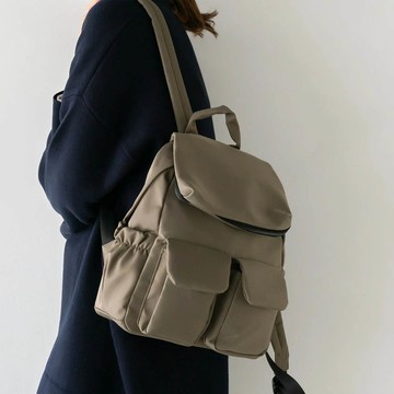 supportingrole 輕量羊皮多口袋分層後背包 黑