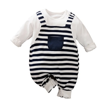 JoyNa - 嬰兒連身衣 春秋款動物造型包屁衣-藏青橫條