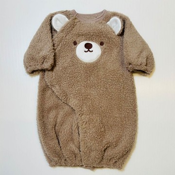 可愛的小熊圖案毛茸茸刷毛連身衣。手腳都毛茸茸的,像絨毛玩具,讓人想緊緊抱住。柔軟舒適的觸感輕便且保暖。無論外出還是當作家居服都非常適合