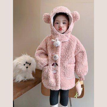 【中小女童】可愛小熊鋪棉加厚連帽防風外套