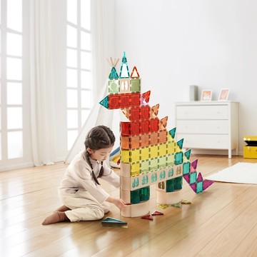 zzzMoon - 彩窗設計彩虹磁力片積木110片-(含4片彩窗)