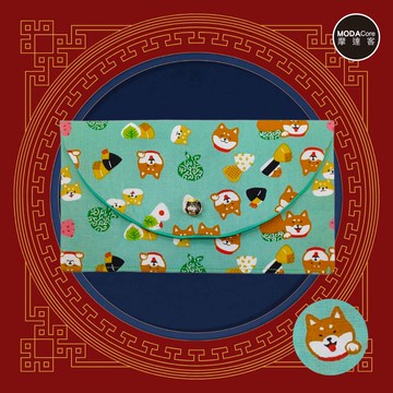 MODACore 摩達客 - ◉春節開運招財◉台灣製MIT可愛柴犬Q飯糰花布紅包袋(綠色)單入錢包