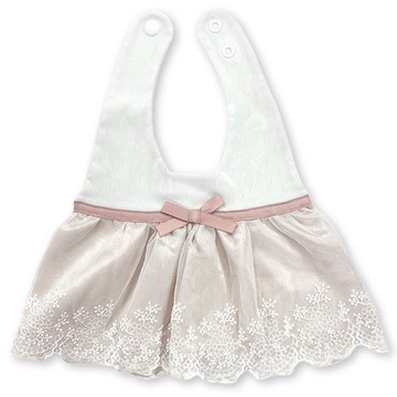 下擺的蕾絲和蝴蝶結非常可愛的洋裝風圍兜。適合用於參加典禮或活動