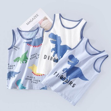 MAMDADKIDS - 竹節棉透氣無袖背心(三件組)-恐龍來襲-白+藍