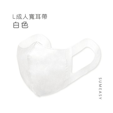 順易利口罩 SUMEASY - 成人3D立體醫用口罩-L款-彈性寬耳帶-白色50入 (成人約13cm x 17.5cm ± 5%)