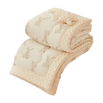 JoyNa - 安撫泡泡絨冬被 加厚嬰兒床毯子 雙面材質泡泡毯-萌萌兔 (120x150cm)