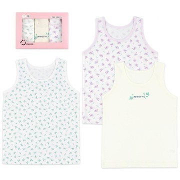 韓國 Maykids - (3入組)女寶無螢光輕柔棉背心-樹葉X花束