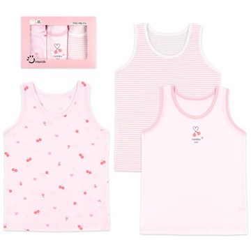 韓國 Maykids - (3入組)女寶無螢光輕柔棉背心-條紋X櫻桃