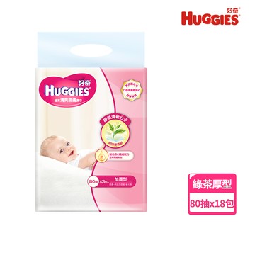 【HUGGIES 好奇】純水嬰兒濕巾加厚型80抽/一般型100抽/綠茶加厚型80抽(18包/箱) 箱購