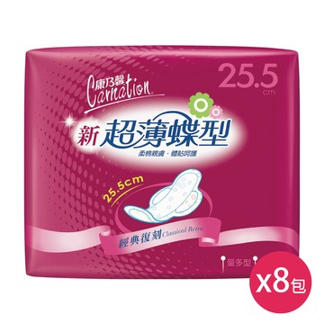 康乃馨 - 新超薄蝶型衛生棉-量多型25.5cm(16片×8包)