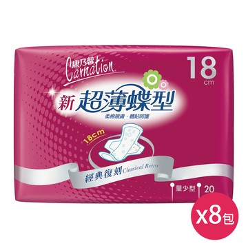 康乃馨 新超薄蝶型衛生棉 18cm 量少型 20片X8包/箱