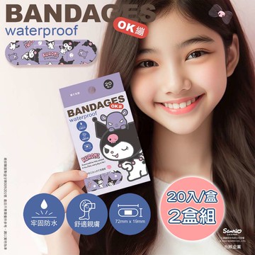 台歐 - 三麗鷗 KUROMI 酷洛米 聯名款OK繃傷口貼 20入/盒*2盒-摩達客推薦