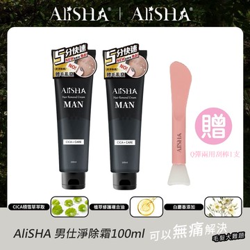 AliSHA - 男仕淨除霜2入組 除毛膏 除毛 光溜溜(贈送 AliSHA 超Q彈美肌兩用刮棒/單入)-100mL