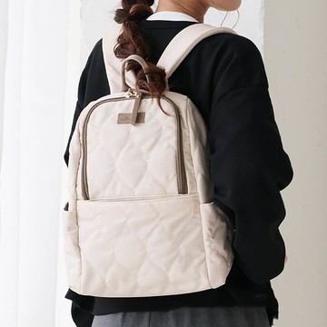 日本 LIZDAYS - 8口袋輕量絎縫防潑水時尚後背包-米杏