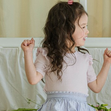 韓國 Puellaflo - 荷葉肩飾羅紋短袖上衣-淡粉