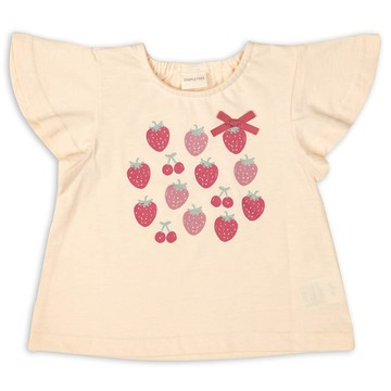 akachan honpo - 短袖T恤-胸口荷葉邊-米白色