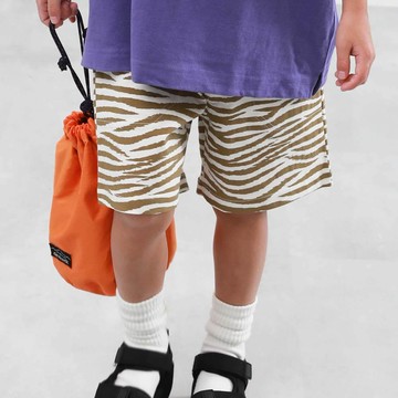 日本 devirock - [熱銷]超彈力印花短褲-斑馬紋-淺棕