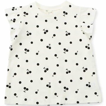 日本 apres les cours - 清爽印花荷葉短袖上衣-櫻桃點點-白