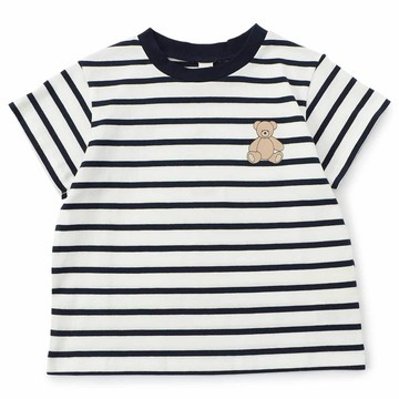 日本 apres les cours - [人氣]俏皮印花短袖上衣-熊熊條紋-黑x白