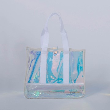 日本 AUBE - 霓虹色透明PVC玩水托特包-白 (35x28x15cm)