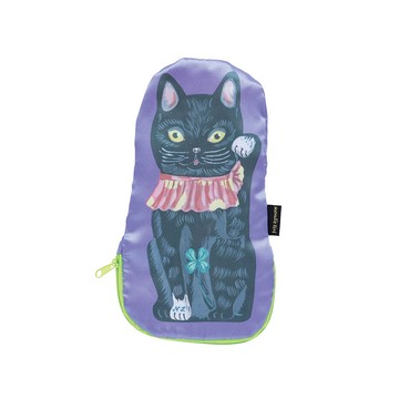 日本 8mw - 歐風童趣印花緞面筆袋-黑貓-紫