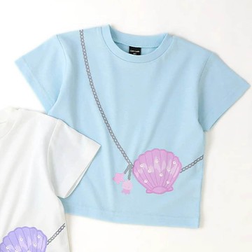 日本 ZOOLAND - 甜美女孩圓領短袖上衣-貝殼包包-水藍