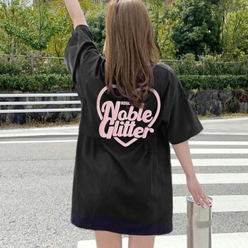 日本 GRL - 立體酷心型印花長版T恤-經典黑 (F)