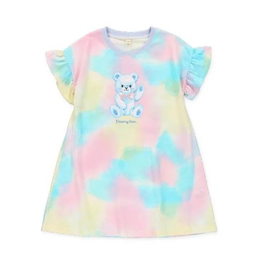 日本西松屋 - 霓虹粉彩小熊荷葉短袖洋裝
