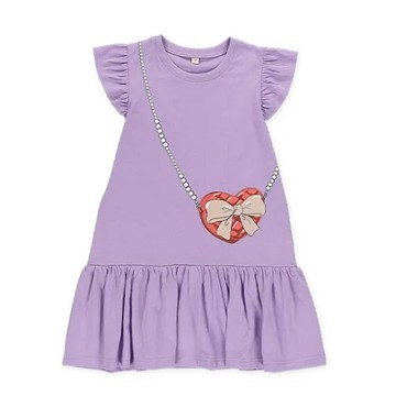 日本西松屋 - 時尚小包印花法式短袖洋裝-紫