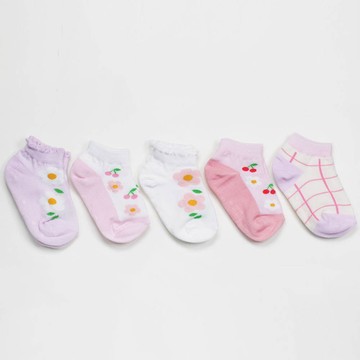 韓國連線 - (五入組)韓製兒童短襪-格紋X花漾