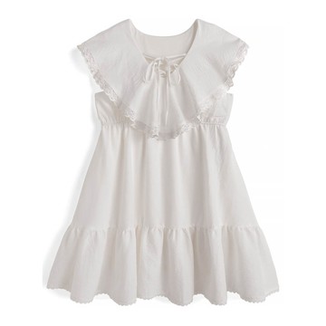 日本 GRL - 俏麗蕾絲荷葉領迷你洋裝-白 (F)