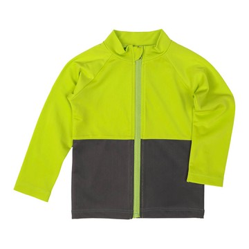 正反面採拼接設計。前開式拉鍊設計,穿脫輕鬆、簡單。長袖款式,適合用來防曬,UV遮蔽率90%以上。非常適合在海邊或游泳池穿的防曬泳衣