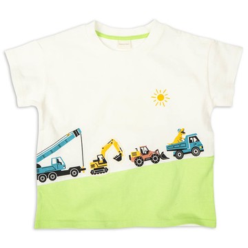 日本西松屋 - 立體發泡印花短袖上衣-挖土機-白