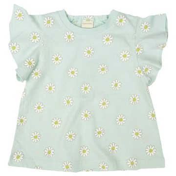 日本西松屋 - 楊柳柔軟荷葉翻領短袖上衣-小花-米白