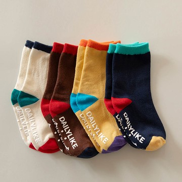 韓國 Daily Like - 兒童襪子/中筒襪4入組-拼色01-白X咖X黃X深藍