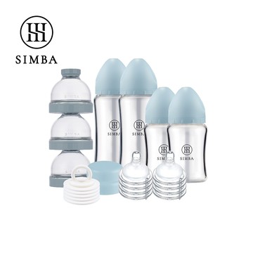 Simba 小獅王辛巴 - 蘊蜜質金玻璃寬口奶瓶人氣口碑組-晨藍