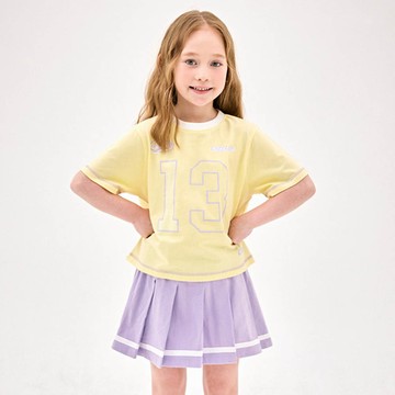韓國 Jelispoon - 活力數字印短袖上衣X百褶裙套裝-黃X淺紫