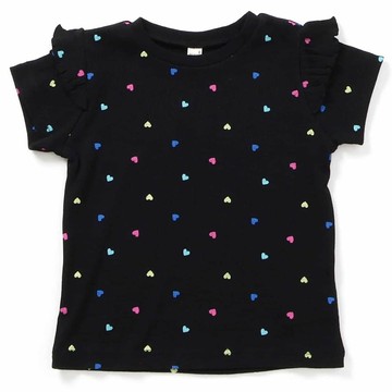 日本 apres les cours - [推薦] 荷葉邊袖羅文短袖上衣-滿版愛心-黑