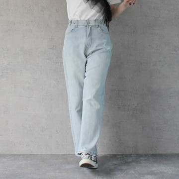 日本女裝代購 - 彈力修身高腰直筒丹寧褲(再生環保材質)-淺水藍