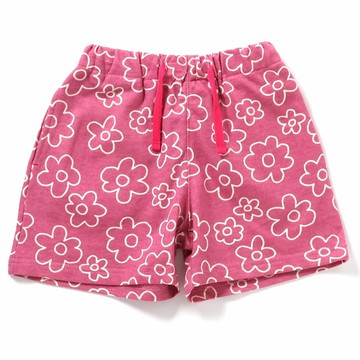 日本 BREEZE - [必收]100%棉 舒適鬆緊印花短褲-花朵-粉紅