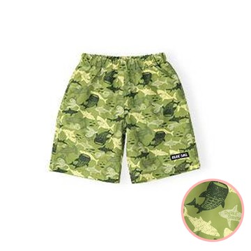 日本 ZOOLAND - 抗UV 童趣印花海灘褲/泳褲(含內褲)-鯨鯊-軍綠