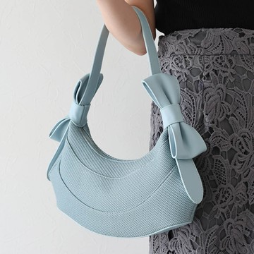 日本 BLUE EAST - 可愛雙蝴蝶結時尚紋理肩背小包-藍