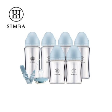 Simba 小獅王辛巴 - 蘊蜜質金玻璃寬口防脹氣奶瓶4大2小全配組-新生適用-治綠