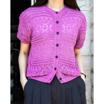韓國女裝連線 - 韓製 夏日棉麻編織圖騰短袖針織外套/上衣-桃紫 (FREE)