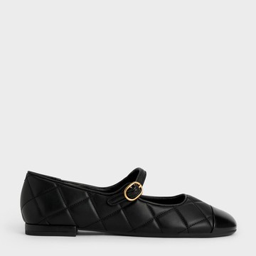 平底鞋 MISS 21 迷戀少女芭蕾風蝴蝶結交叉帶羊皮瑪莉珍平底鞋-黑