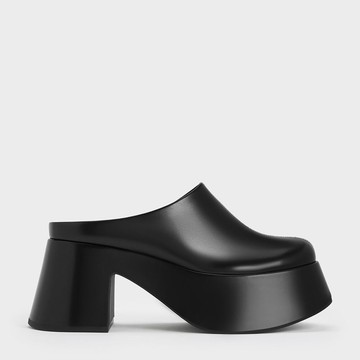 PLATFFORMS 皮革高跟木屐鞋-靚黑色