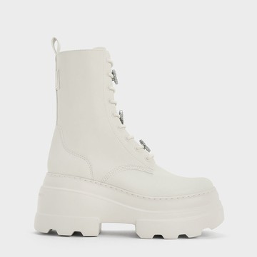W&M 造型後襪套內側拉鍊短靴 女鞋-米白色