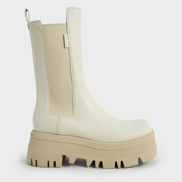 潮流雙色側鬆緊帶厚底靴 (41410)